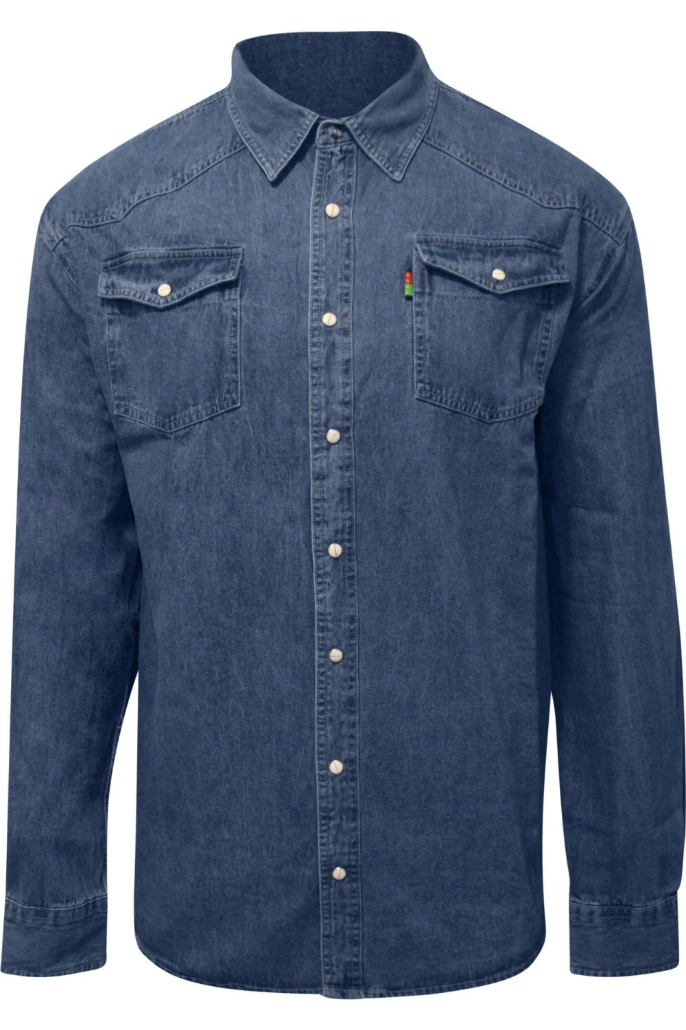This Western denim button-down shirt from Duke features a small branded tab on the chest. The kingsize fit ensures the wearer stays comfortable all day. The two chest pockets provide storage for small items while on the move. A stylish addition to any wardrobe.