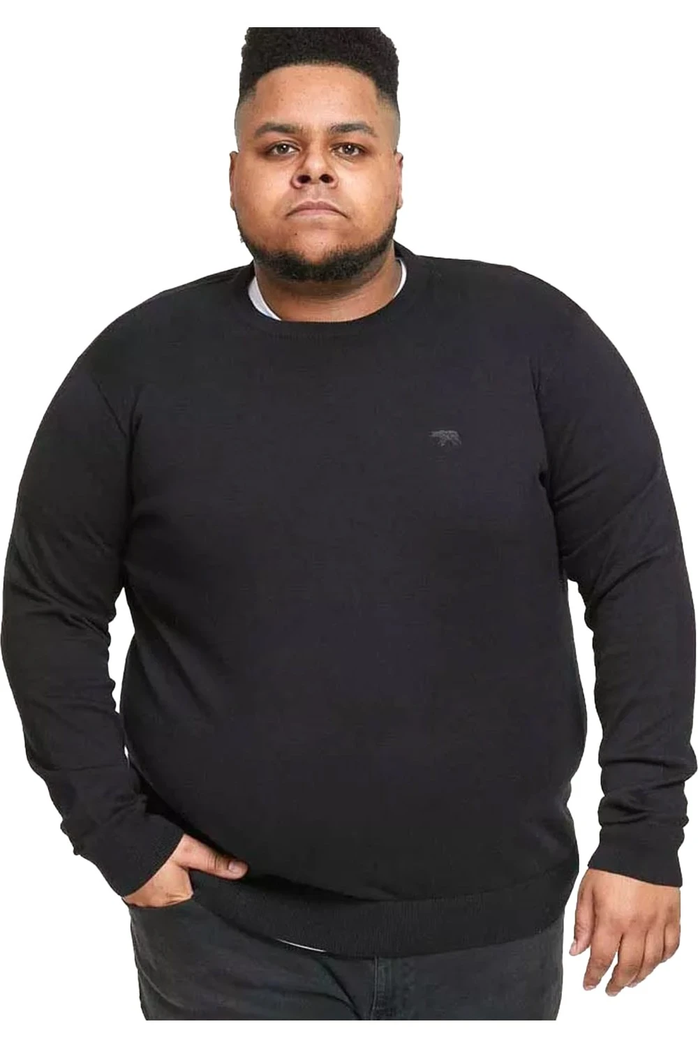 This product details a mens sweatshirt from Duke Clothing Company. The model is the D555 Jovanni 1 in a crew neck style made from a soft touch fabric. It features the brand logo design. The hem, neckline and cuffs are ribbed. The sleeves are long. It has a kingsize fit that pulls over the head without fastenings. The sweatshirt comes in a range of oversized fits – XXL measures 52 inches, 3XL is 55 inches, 4XL is 58 inches and 5XL is 61 inches.