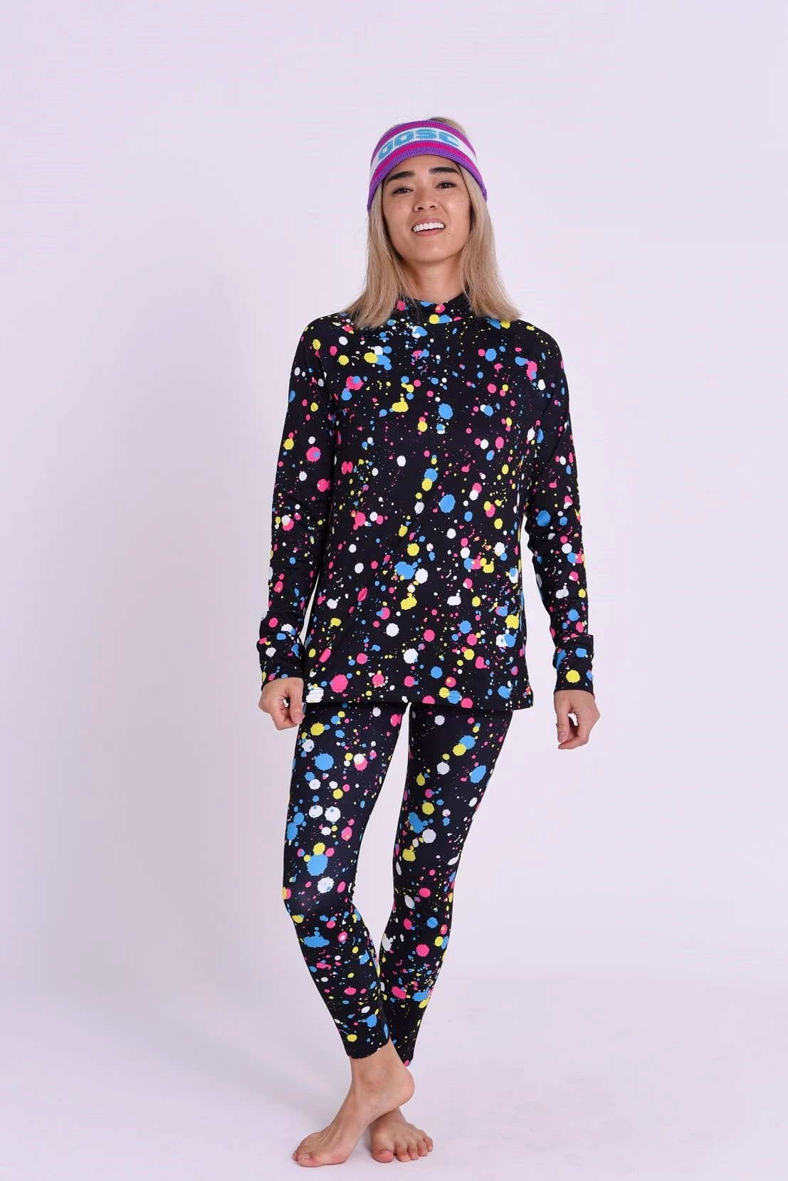 We designed these bad boy baselayer tops with peachy soft insides so that they’re super comfortable; they have a super cosy soft high neck gaitor to protect you from the elements on those cold days!
