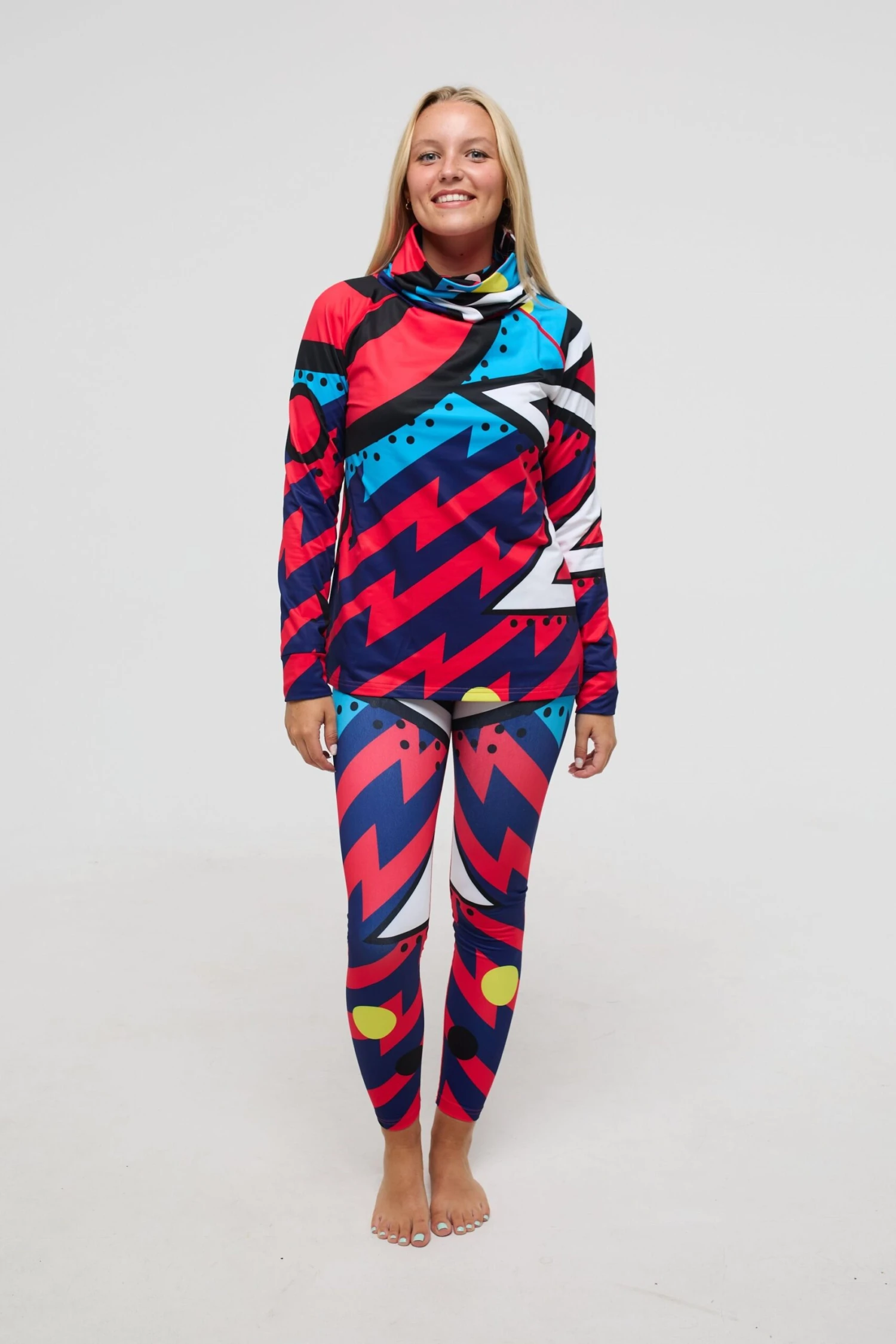 Our baselayer leggings are super comfy and stretchy they are the perfect close fit for a full day on the hill. The anti roll waistband helps keep them up and comfortable.