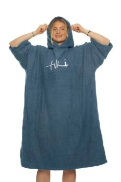 Quality towel change robe with a hood and generous sleeve length. 110cm x 85cm