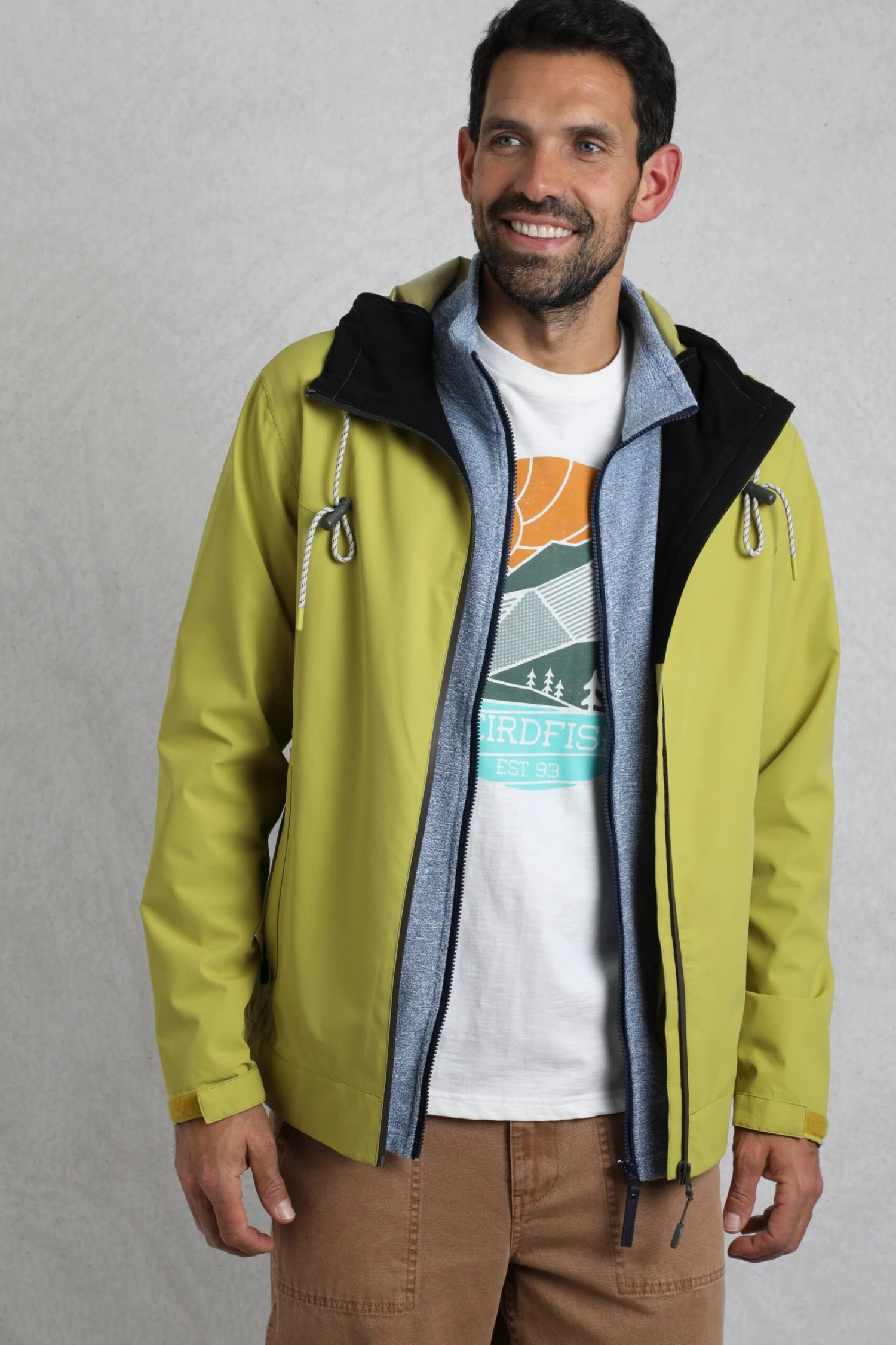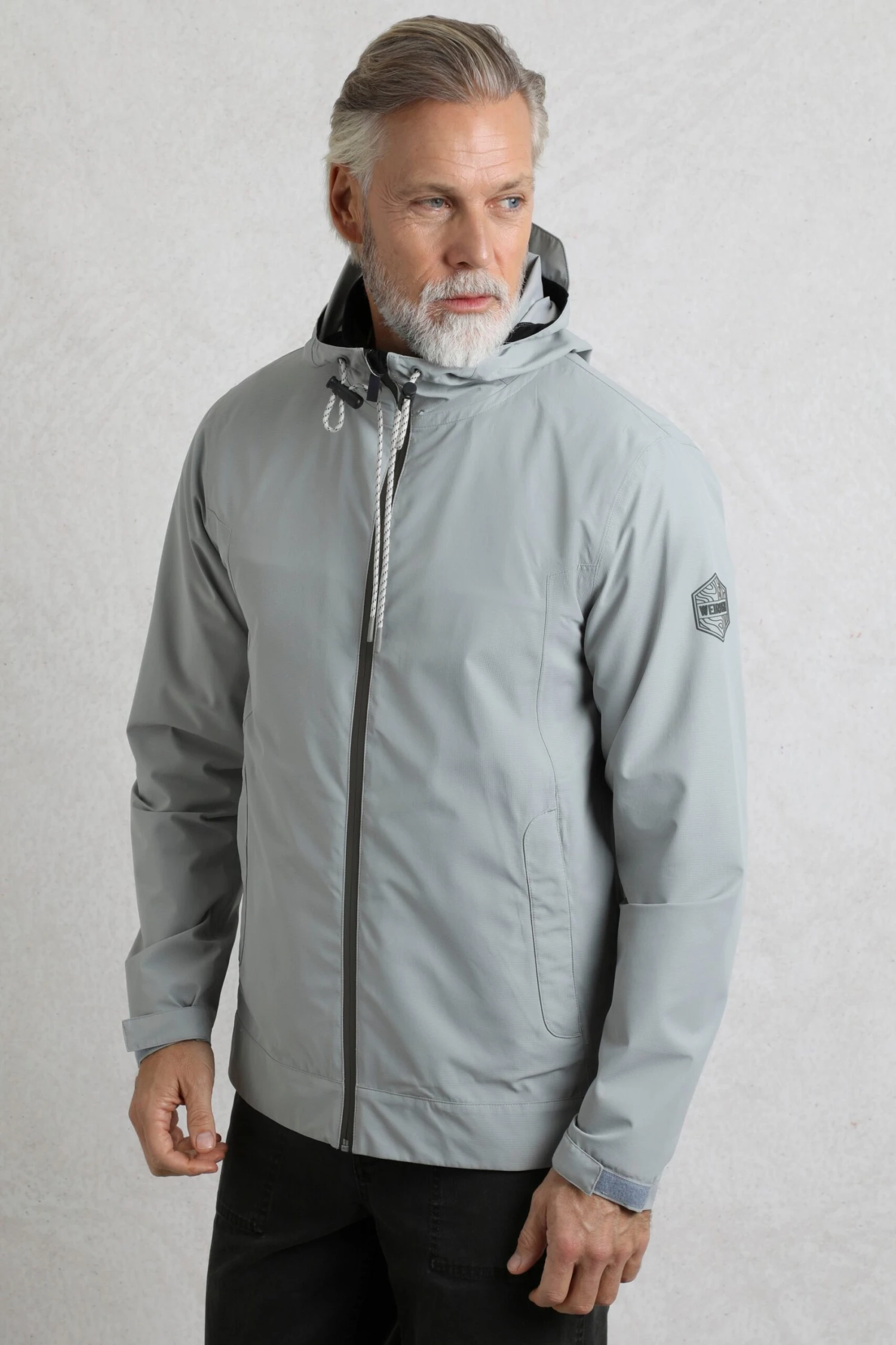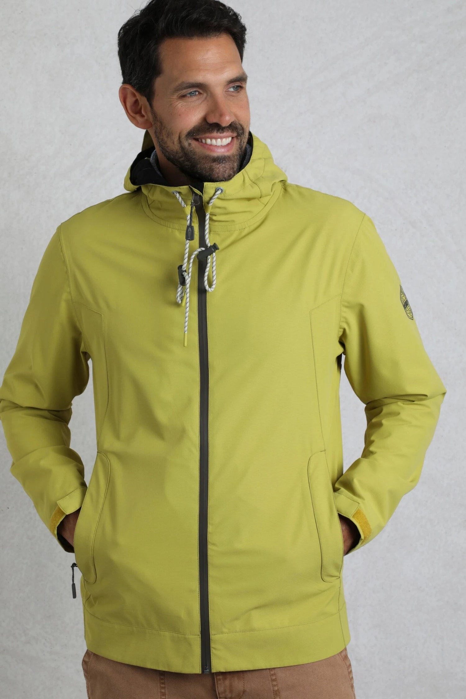 Not your average waterproof jacket, the Prescott waterproof packaway jacket is finished with a subtle tiny grid texture. It has taped seams to keep out the rain, but we have added in some metal eyelets under the arms for breathability. The hood is peaked to help the water run off. It has fully taped hand slip pockets to keep your valuables dry, and it even packs away into it’s own left hand pocket for easy travel.
