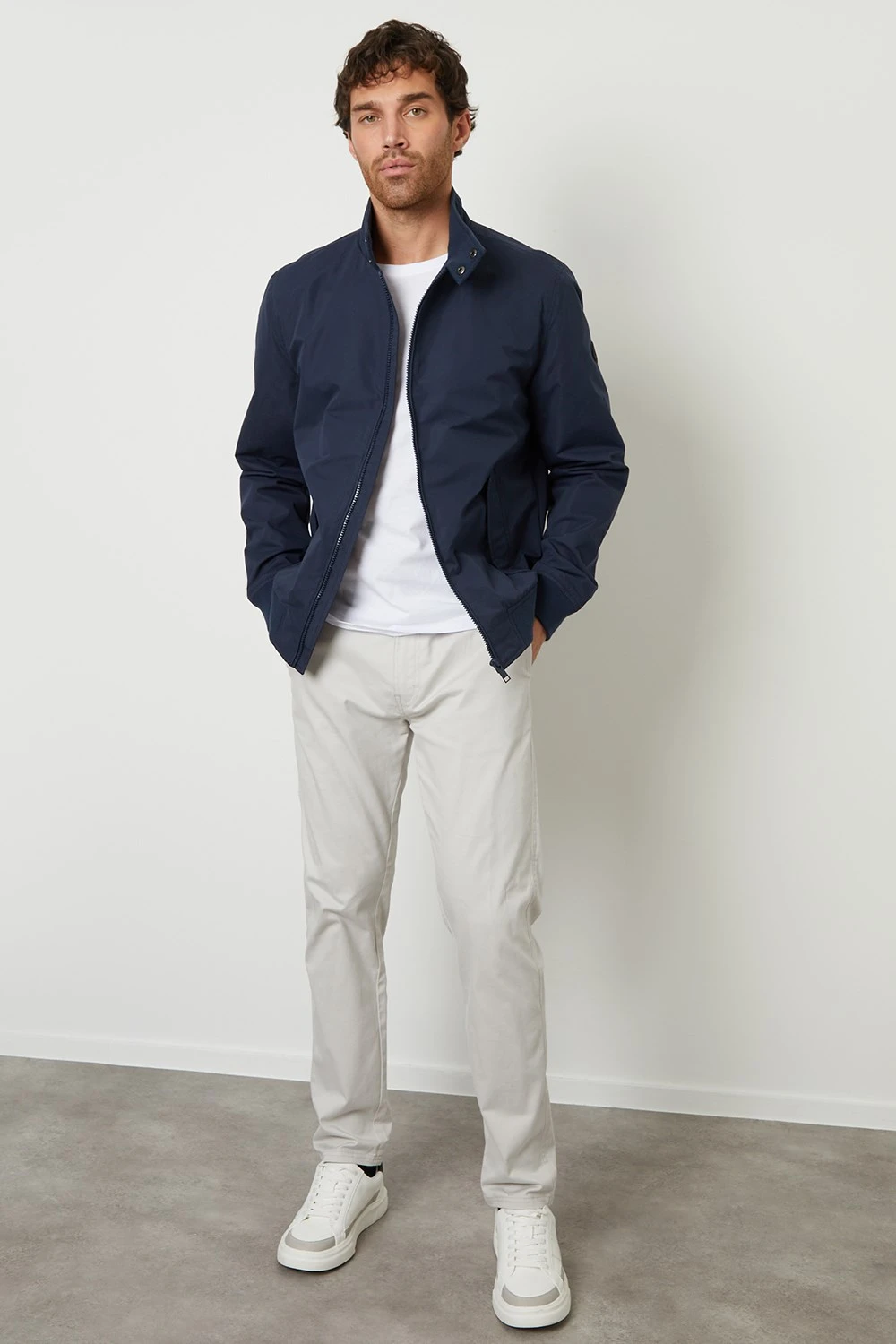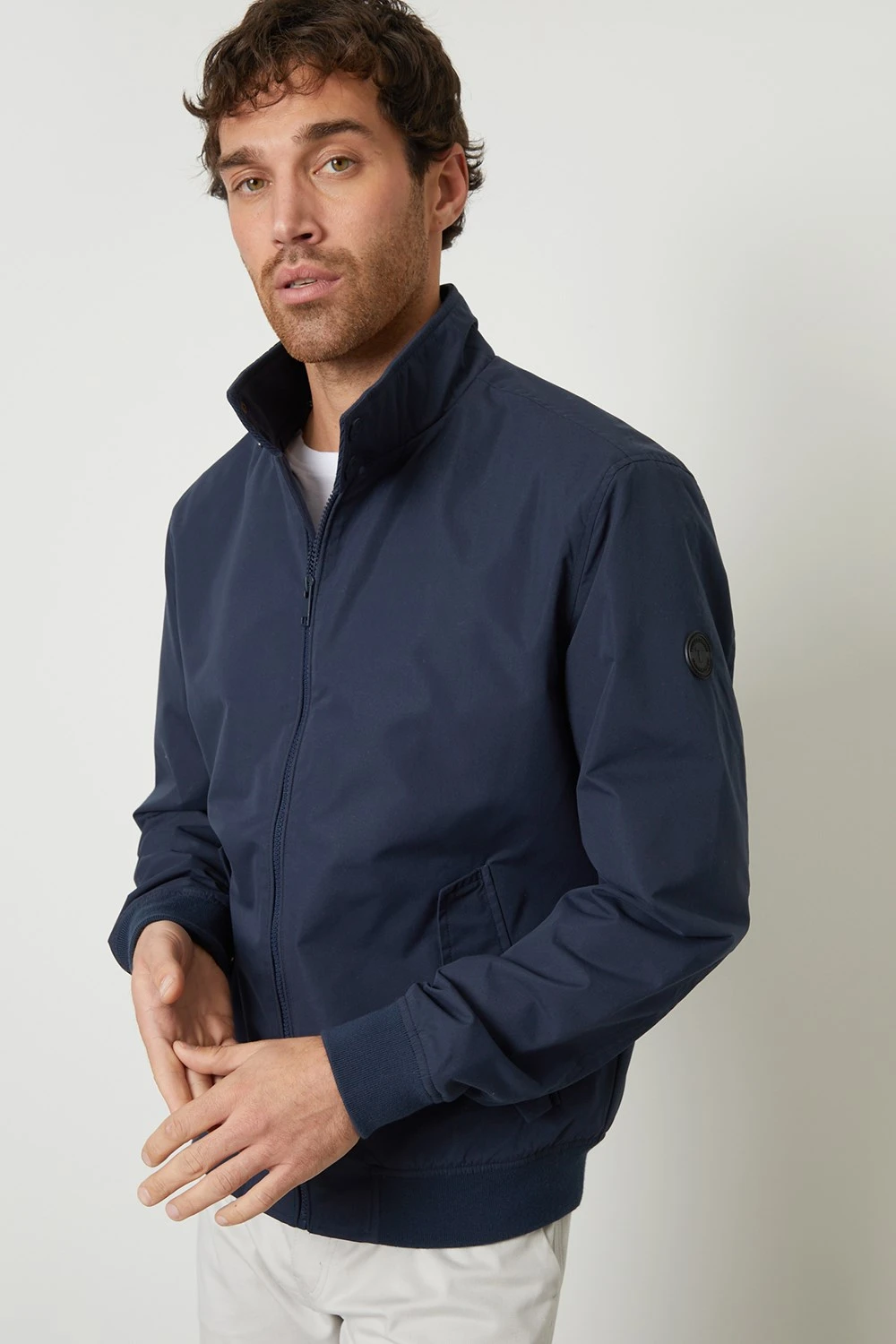 Look no further than this Harrington-style jacket from Threadbare for a smart and stylish look. This classic jacket is cut in a regular fit and has ribbed, cuffed sleeves, a ribbed hem, a funnel neck with two press stud and full zip fastening with a storm guard to keep you warm. Fully lined, this jacket is complete with two angled press stud flap pockets, and a pocket inside. Team with a simple white t-shirt, jeans, and boots for an effortless outfit.
